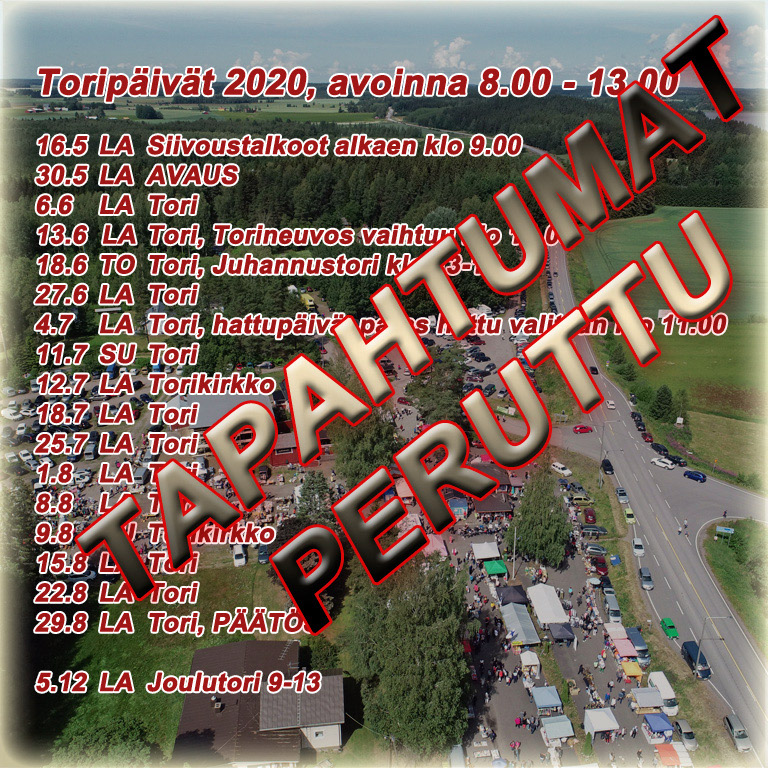 että kesätorin kaikki tapahtumat koko kesän ajalta perutaan. Katseet on jo käännetty kesään 2021. Joulutori tapahtuma, 5.12., tulee kuitenkin näillä näkymin toteutumaan.
